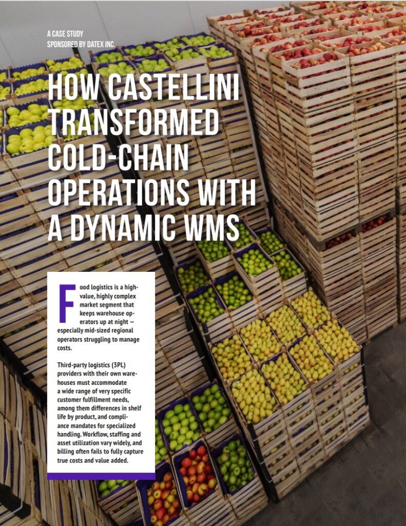 Datex’s specific focus on mid-market operators and facilities, and its expertise with 3PL clients and cold-chain storage, were key differentiators for Castellini. Datex’s Footprint WMS had been developed over time for complex challenges such as managing compliance, tracking inventory and optimizing labor. Its low-code Datex Studio application platform allowed for simplified customization as customers are added or subtracted, and operational characteristics change.