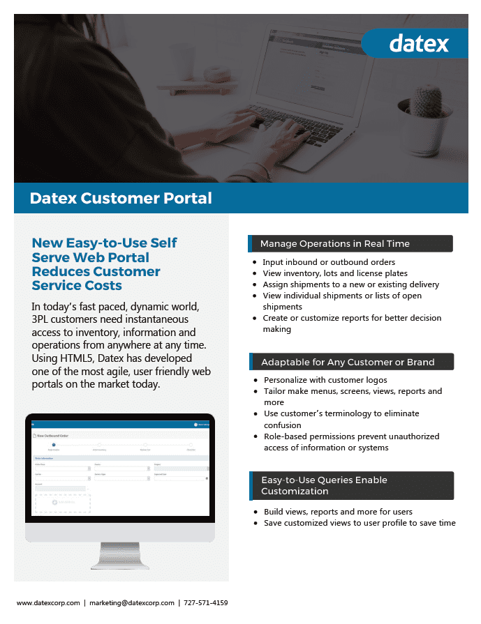 Datex Footprint® 3PL WMS provides an optional web portal to enable clients of
