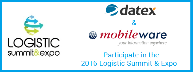 Datex will be participating as part of the Mobileware exhibition space.  Mobileware and Datex are aligned together to help businesses improve operational efficiency and workforce productivity through the use of automated data capture and supply chain software.  Mobileware provides enterprise mobility solutions and has specialized expertise in dealing with Zebra and Honeywell technology.  The award winning warehouse management software, Datex Footprint® WMS is used by 3PLs, distributors, manufacturers and other supply chain businesses across the globe.  Mobileware will be exhibiting in booth number 2216 at the Logistic Summit and Expo.